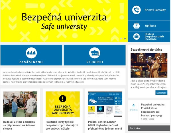 Localized security alerts on your mobile phone, flyers with emergency contacts in university buildings, physical security courses and videos for students. These and other security tools and information for the Palacký University environment are now summarized on the Safe University website. Take a look and help keep UP safe.