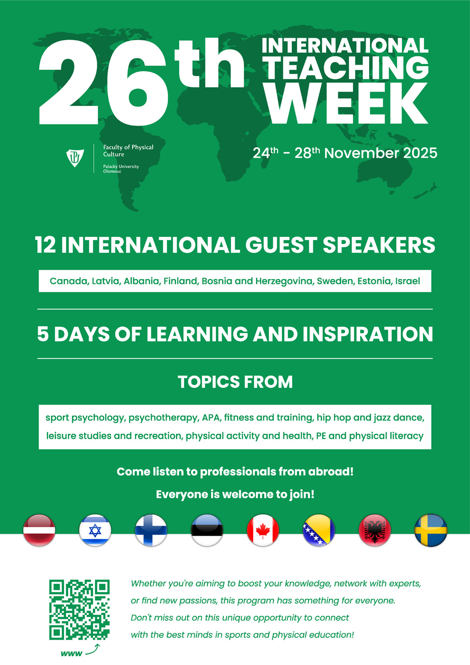 We are excited to announce that the 23rd International Teaching Week (ITW) will be held at the Faculty of Physical Culture from 8th to 12th April 2024!
