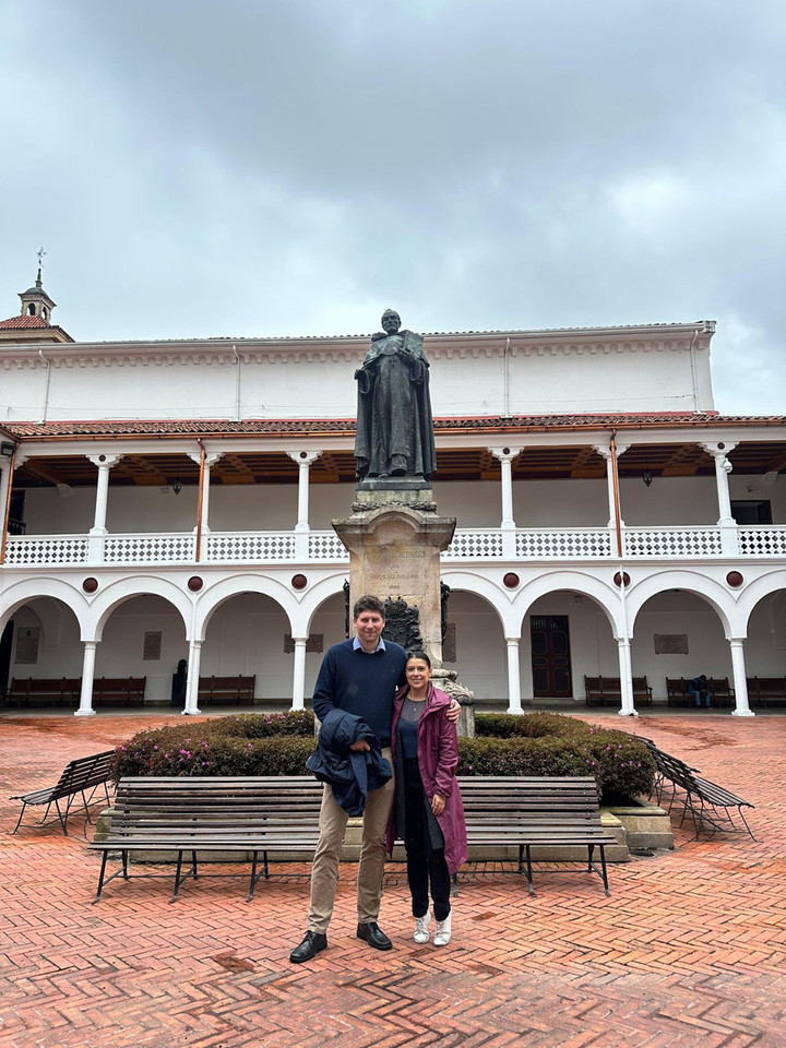 Jak vypadá biomechanika v praxi na druhém konci světa? Tomáš Klein, z Fakulty tělesné kultury (FTK) UP strávil předposlední březnový týden na Universidad del Rosario (UR) v kolumbijské Bogotě, kde v rámci programu Erasmus+ vedl sérii interaktivních přednášek a workshopů zaměřených na využití 3D analýzy pohybu a elektromyografie (EMG) v pohybových vědách a klinické praxi. Tamním studentům a vyučujícím představil i novou metodu dekompozice elektromyografického signálu na signály jednotlivých motorických jednotek, se kterou Fakulta tělesné kultury pracuje v rámci aktuálního biomechanického výzkumu. „Příjemným překvapením byly živé diskuze se studenty, které často trvaly déle než přednáška samotná. Bylo znát, že studenti mají opravdový zájem porozumět souvislostem a uplatnit získané poznatky v praxi,“ dodává Tomáš Klein. Součástí mobility byla také jednání s akademickými pracovníky fakulty ohledně budoucí spolupráce, včetně možností další výukové výměny, sdílení výzkumného know-how a zapojení do společných projektů.
