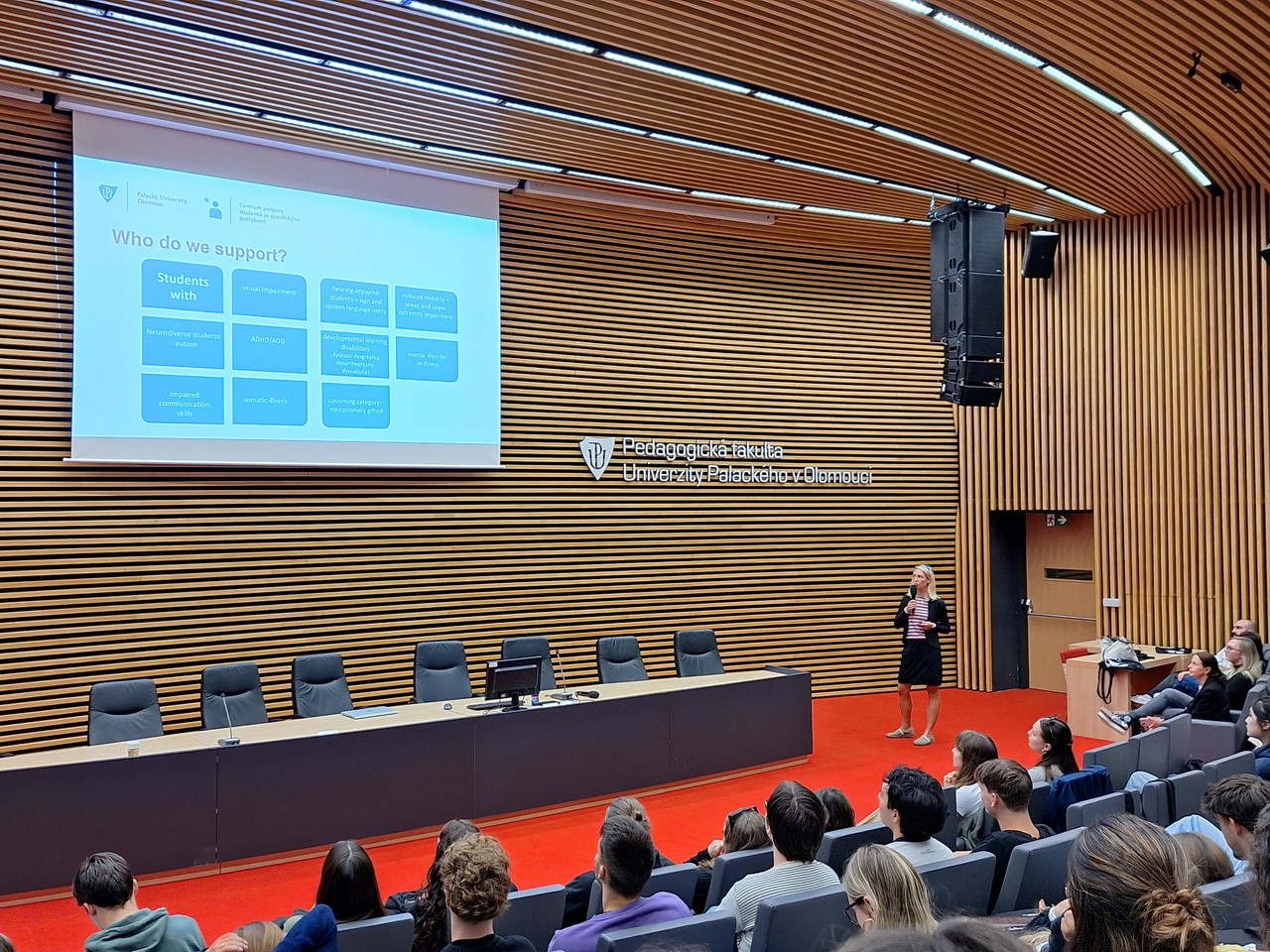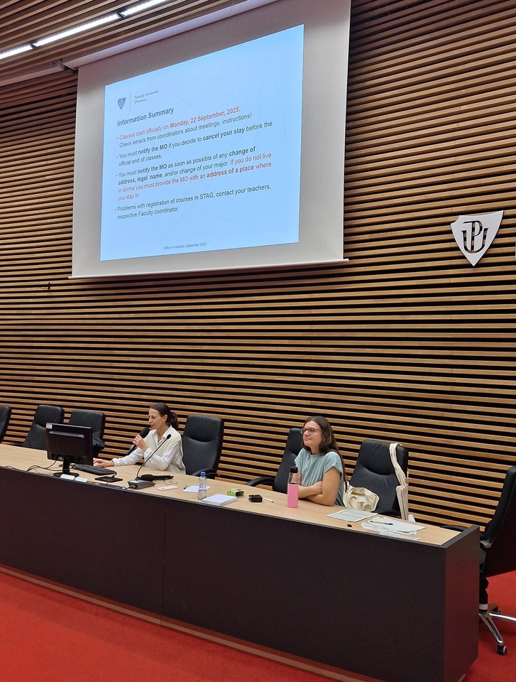 Studentům se dále představili Akademik Sport Centrum, Welcome Office UP, ESN UP Olomouc, Udržitelná univerzita či Centrum podpory studentů se specifickými potřebami. Studenty také osobně pozdravila i paní Mgr. Ilona Utěkalová, která ve své prezentaci předala důležité informace a pravidla ze Správy kolejí a menz.