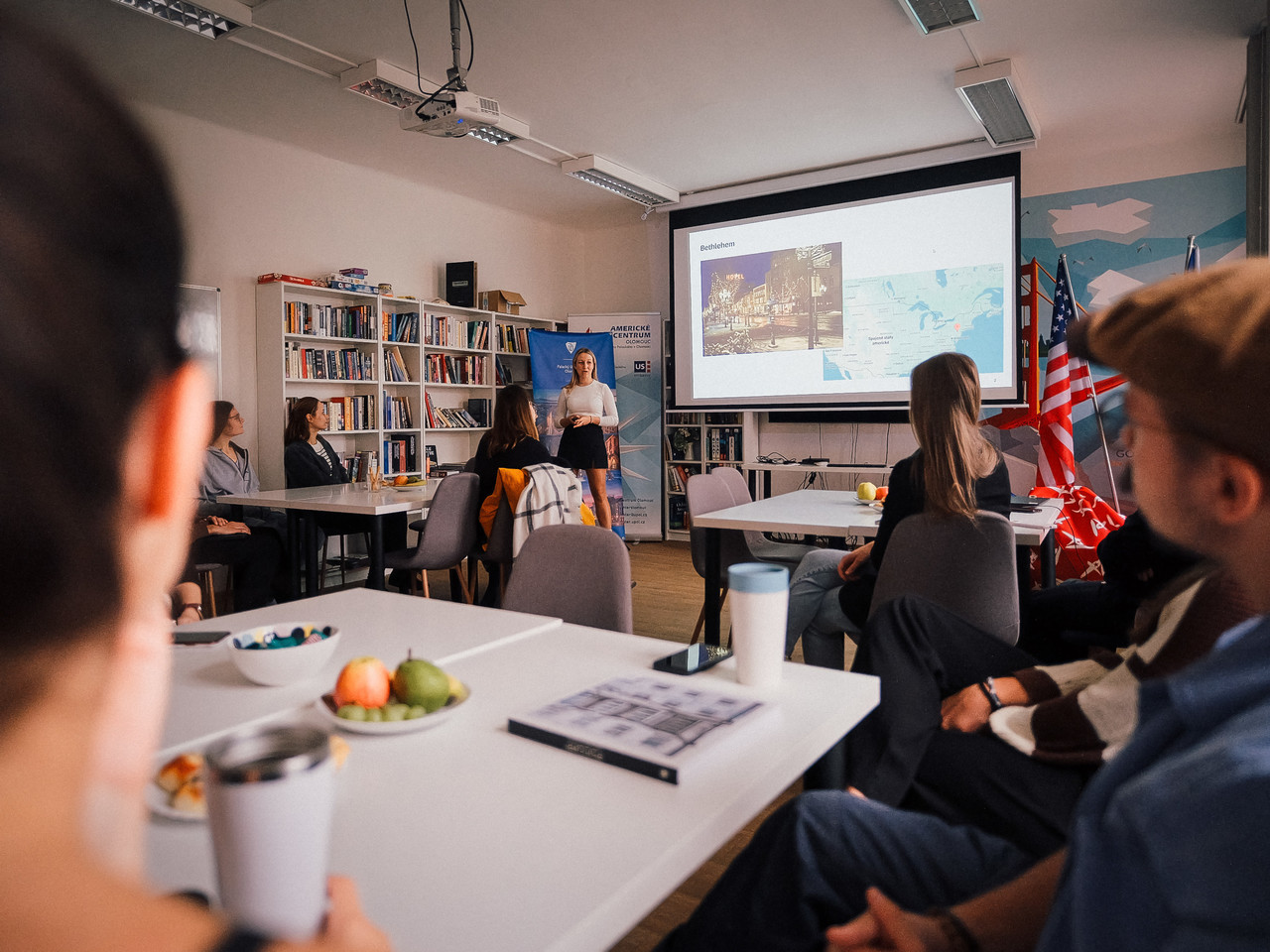 Ve středu 15. října odpoledne jsme otevřeli dveře našeho oddělení a uspořádali přátelské setkání s koordinátory programu Erasmus a také při této příležitosti představili Merrillův program, který nabízí stipendia pro studium na partnerských univerzitách v USA. Publikum zcela okouzlily absolventky Merrillova programu sdílením svých zkušeností se studiem v USA. Výzva pro podávání přihlášek na Merrillův program v akademickém roce 2026/2027 je aktuálně otevřena až do 8. prosince 2025. Momenty ze setkání zachytil fotograf Vojtěch Kmenta.
